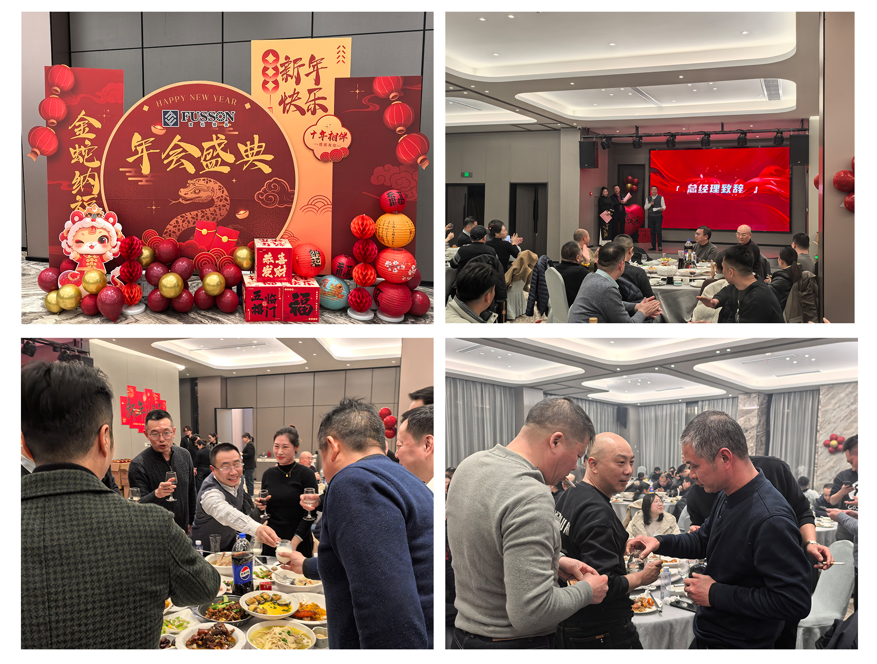 2025年1月21日,富松模具舉辦了年終答謝晚會,以感謝員工一年的辛苦付出;同時2024年也是富松模具新工廠落成十周年,十次春秋的更替,十載辛勤的努力,三千六百多次的日升日落,造就了今天的成績;十年企業人的奮斗,十載領導者的耕耘,一百二十個月的斗轉星移,奠定了今天的規模。為了表達誠摯的感謝,本次晚會也邀請了通達總部的領導與同仁,以及部分合作商到場,共同舉杯歡慶,見證富松模具十年的成長與成績。