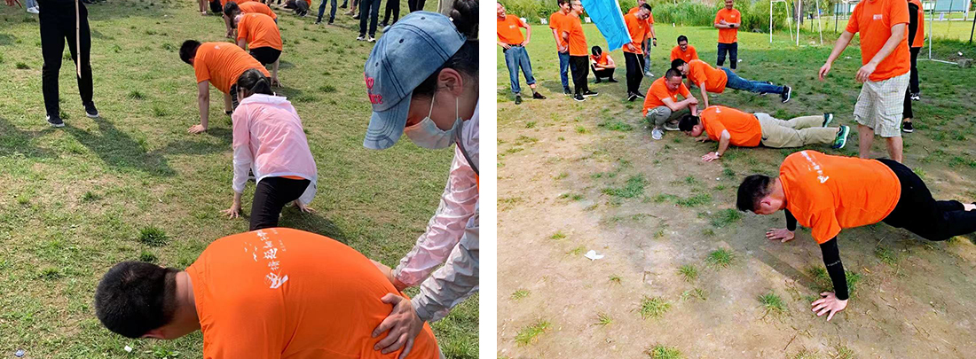 燒烤結束之后,就要開始下午的團隊PK賽,四個隊伍摩拳擦掌,氣氛被哄托到最高點。最后的勝負是通過接下來的三個比賽所積累的積分來獲得,分別是十人九足、挑戰極限和鼓動人心三項。為了自己團隊的勝利,大家鉚足干勁想要發揮自己最大的力量。在下午的比賽中有人摔倒了,但是沒有關系,爬起來,繼續挑戰,關鍵時刻不能給自己的隊伍拖后腿,經過幾輪積分賽,最終只有一支隊伍獲得了最后勝利,獲得了獎品。但是其他三隊的隊長就要接受懲罰--俯臥撐,隊長完成不了的,會有隊友主動站出來替隊長繼續完成。在下午團建的最后,公司的所有員工在草坪上都排好拍下了合照,記錄下了這一美好的時刻。
